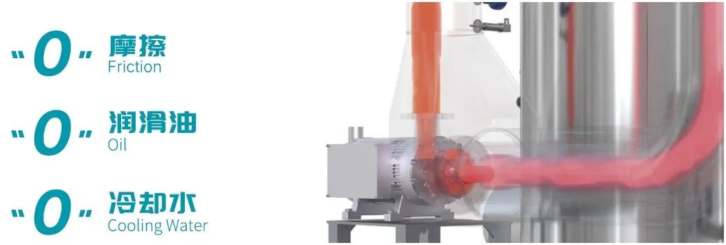亞光磁懸浮蒸汽壓縮機基于樂恒成熟可靠的高速直驅技術,沒有了齒輪箱,可實現“0”機械摩擦、“0”潤滑油、“0”冷卻水。不僅降低了油霧污染的風險,更大大減少了維護保養需求,相較其他形式的蒸汽壓縮機具有極大的優勢。
